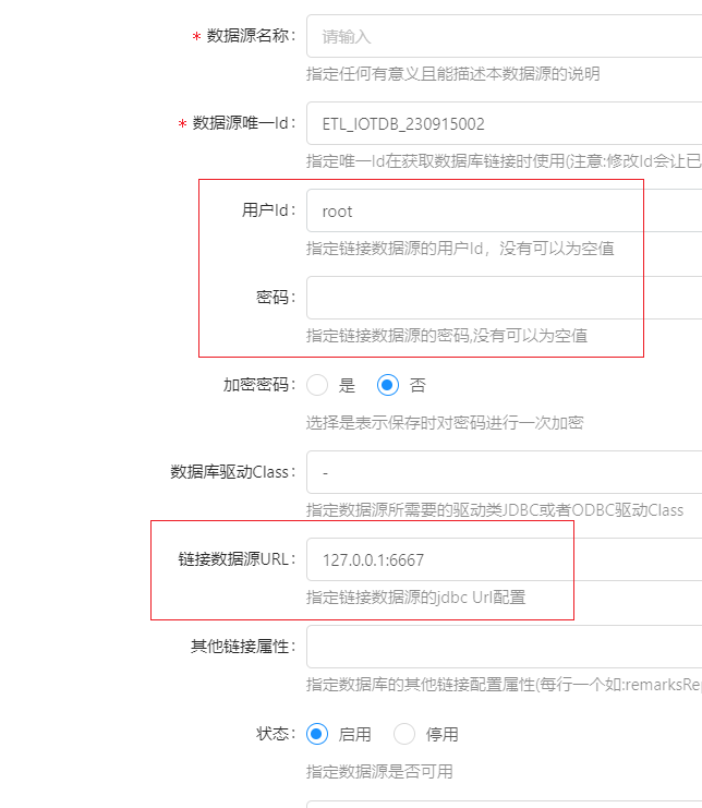 1.需要先配置IoTDB数据源,只需要配置以下几项: